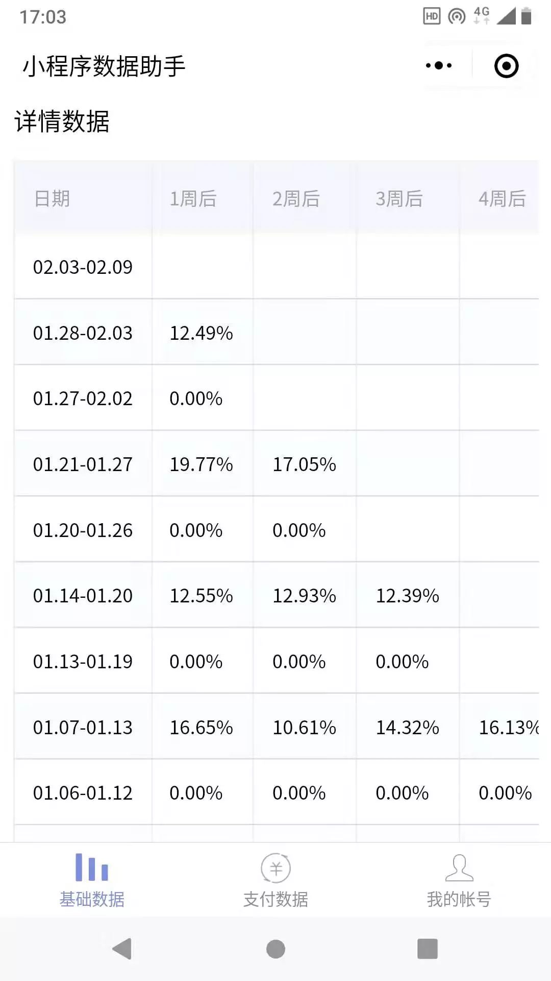 如截图所示,周留存数据,非常规律,每隔一周就有一周数据全部为0,麻烦查下问题在哪里。数据我每天看,不可能有一整周新增都为0的情况。