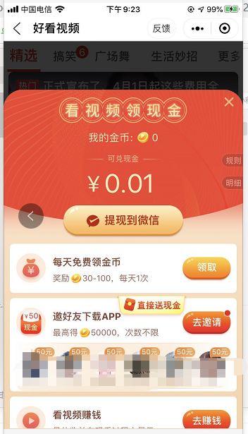 7、小程序内无实质内容,存在通过批量观看激励视频的形式进行网赚的行为