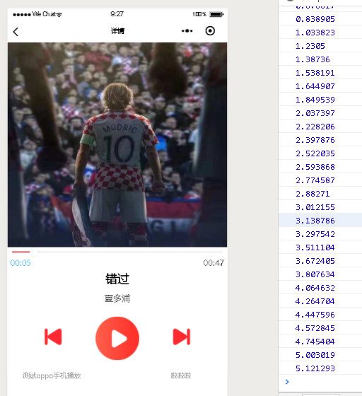 使用 BackgroundAudioManager 播放背景音频的时候,开始播放音频之后,快速暂停然后继续播放反复操作多次,在 OPPO R9s Plus 真机上面会出现音频跳跃的情况,其中,打印出 currentTime 属性值,也会存在跳跃(不同于普通播放的递增)