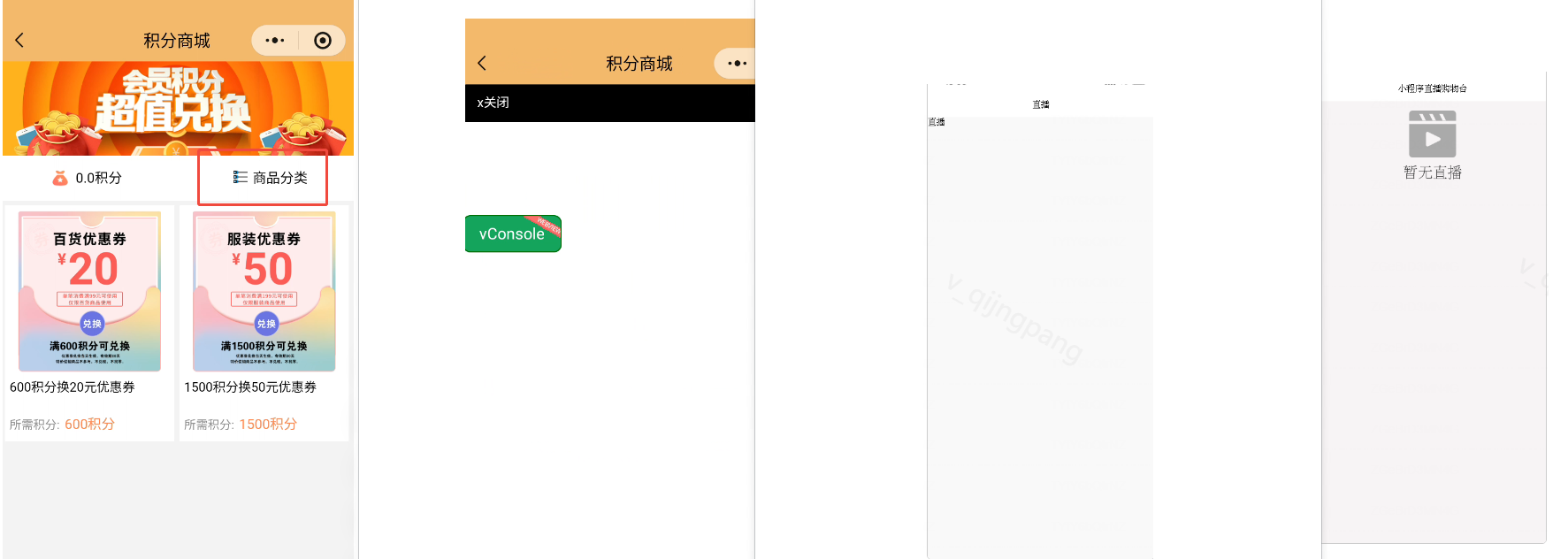 1.【积分商城-商品分类、直播】页面无具体运营内容,请上架正式内容或商品(非测试)或在提审页面上传小程序完整录屏,再提交代码审核。