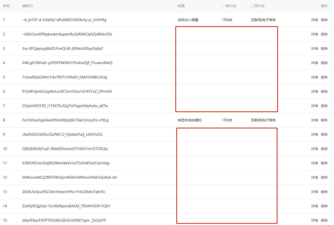 如下图所示,为何我服务号的部分模板消息,只显示“模板id”一栏了?(gh_f8c30f4ebeb7) 各位有遇到类似的情况吗?