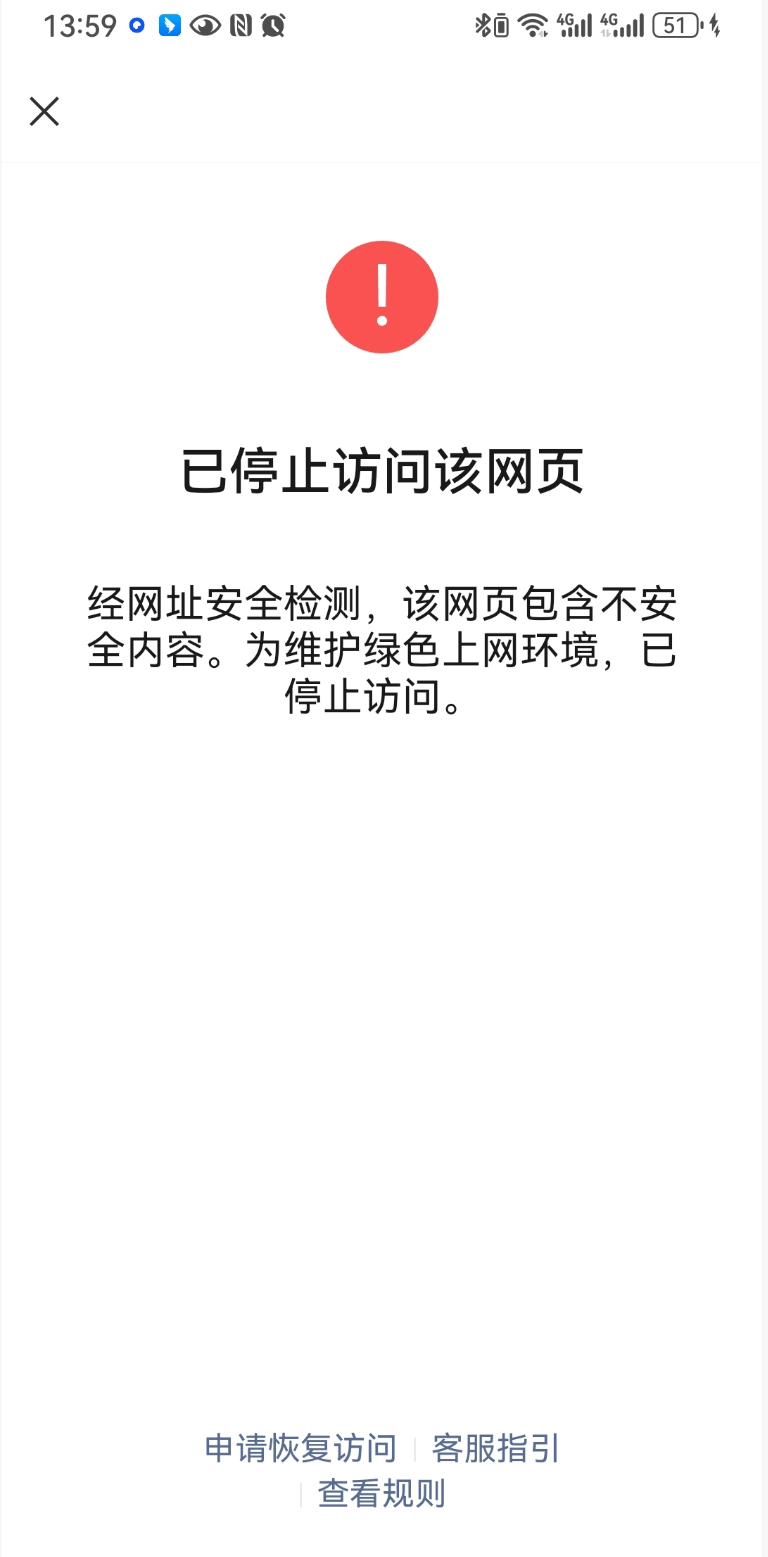 你好,请提供具体链接以及点击链接时出现拦截页的微信号、时间,以便我方核实。