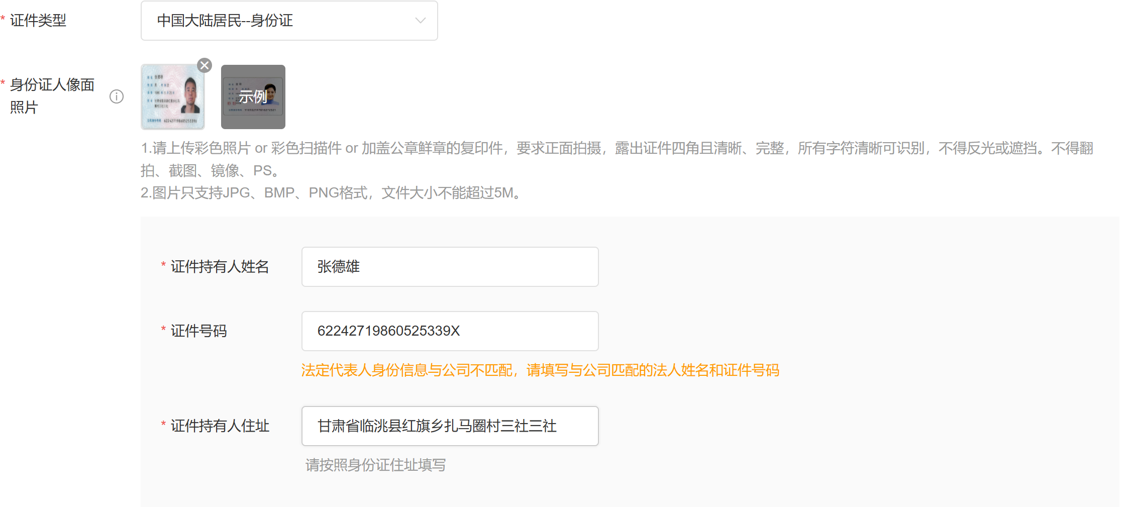 备案、申请微信支付时提示法人和营业执照不符,工商那边查询都是合适的怎么解决