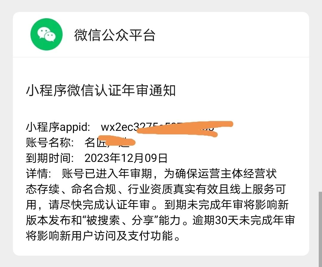 复用公众号资质认证已是过去式了,现在年审是趋势不可避免,以后台通知为准,存量小程序目前可能是在逐步通知。