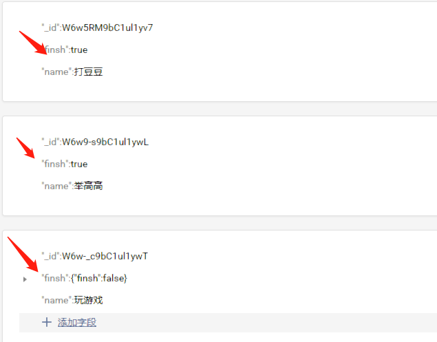 当finsh为false时,生成的是一个object,而不是我选的bool类型,而值为true没问题
