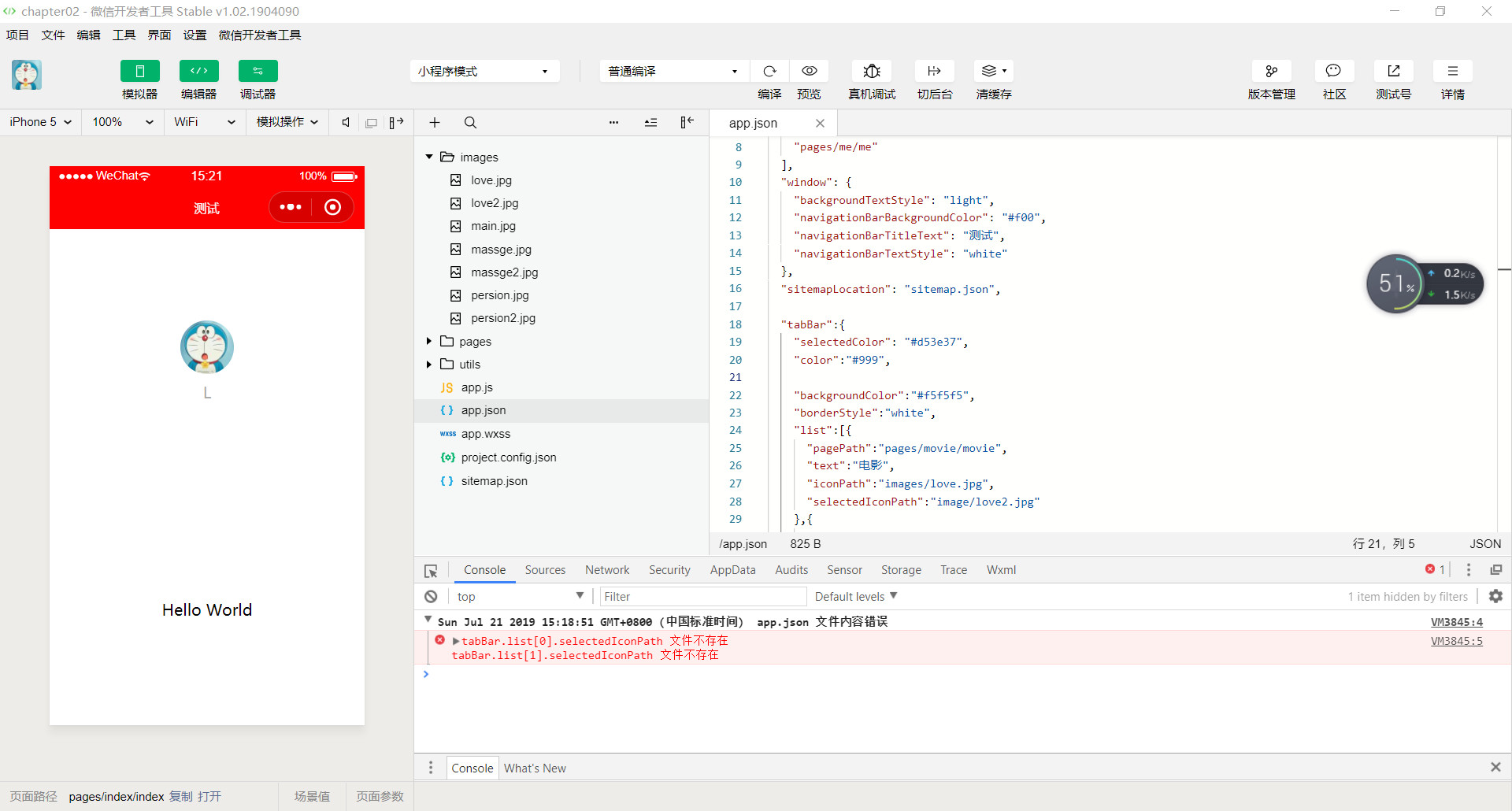 icon 路径不对,image改成images ==> selectedIconPath: "images/love2.jpg"