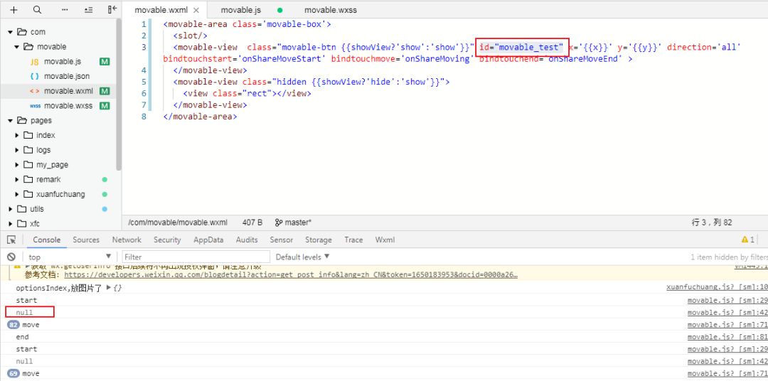 id="movable_test" 的位置信息,然而得到的是空值信息