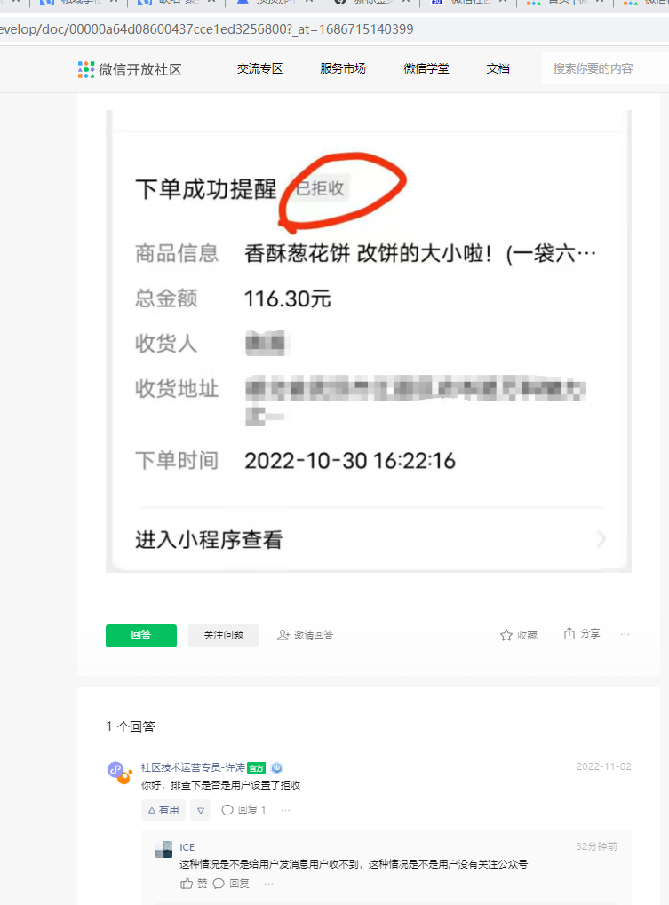 我测试了,只要用户点击消息前往跳转,就有概率直接设置为已拒收,这个属于官方BUG么?概率有点高