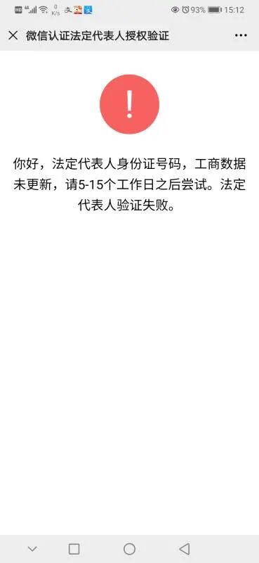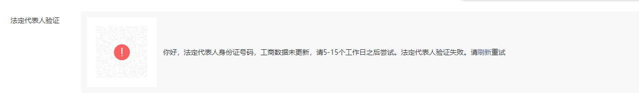 认证了两个客户的公众号 都是这样的问题 两个都可以查到工商信息 法人扫码验证 还是显示工商数据未更新,