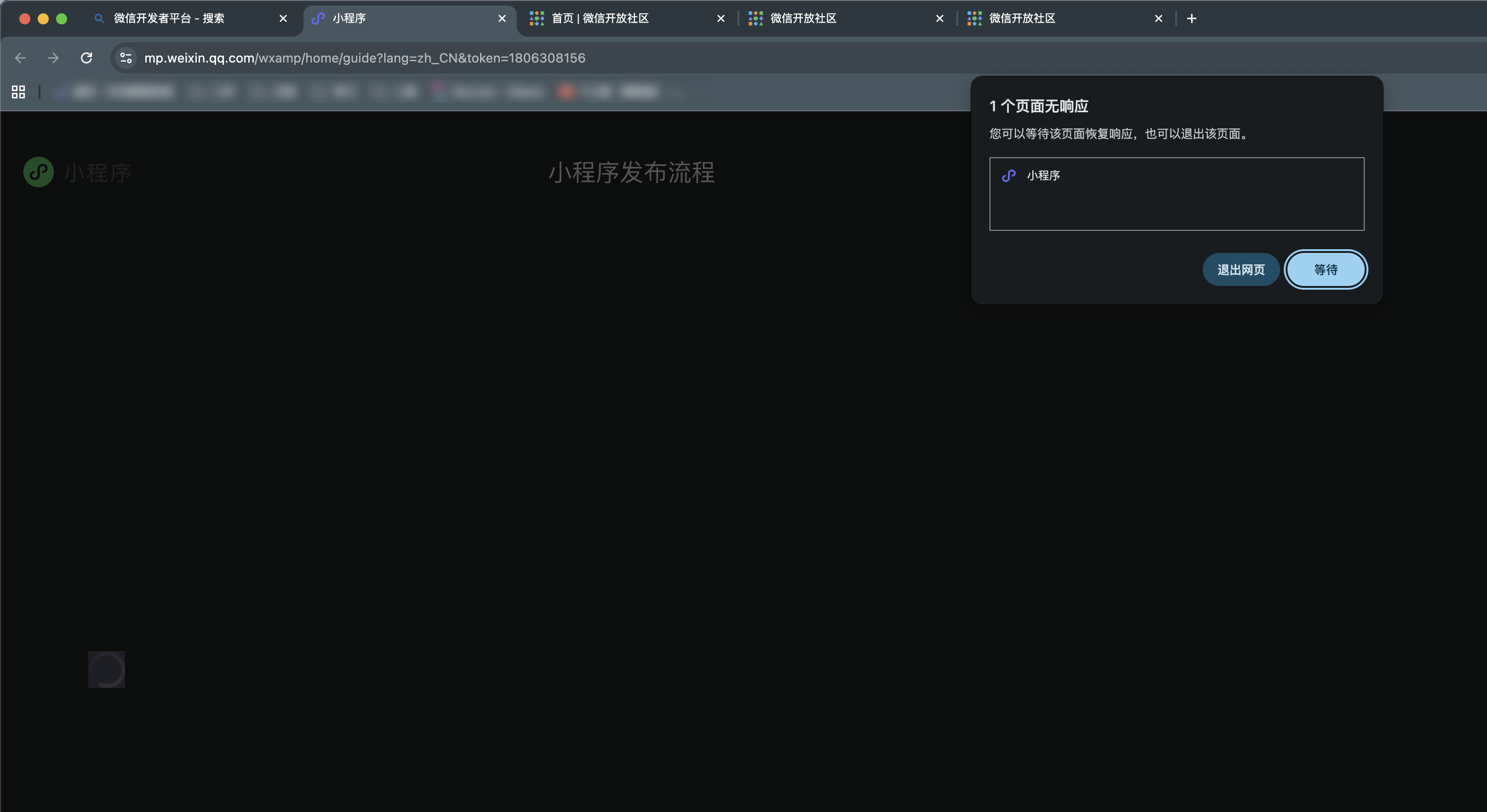 小程序后台进去就卡死是怎么会死,公众号正常,小程序就不行