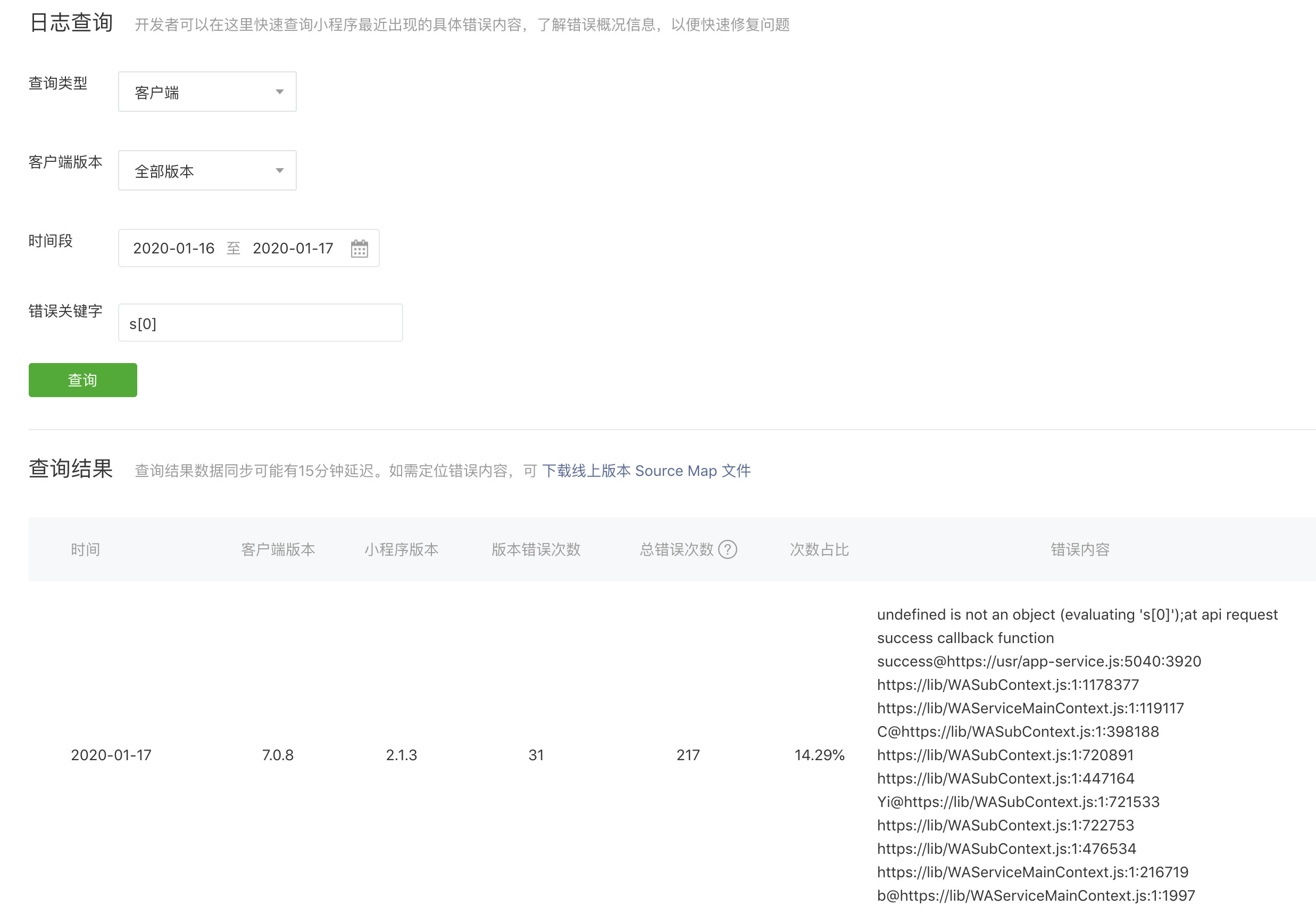 小程序后台的错误日志,对于request中的错误,无法显示出来是在哪个页面,开发人员对于这类的错误信息无从下手。
