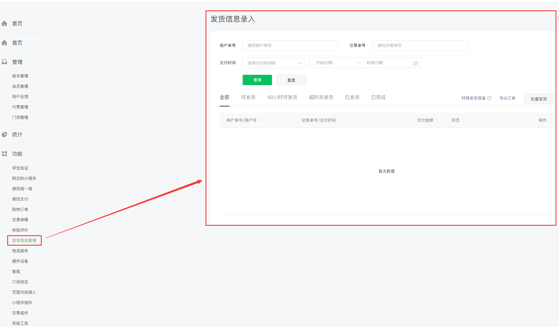 https://developers.weixin.qq.com/miniprogram/dev/platform-capabilities/business-capabilities/order-shipping/order-shipping.html#%E4%B8%80%E3%80%81%E5%8F%91%E8%B4%A7%E4%BF%A1%E6%81%AF%E5%BD%95%E5%85%A5%E6%8E%A5%E5%8F%A3