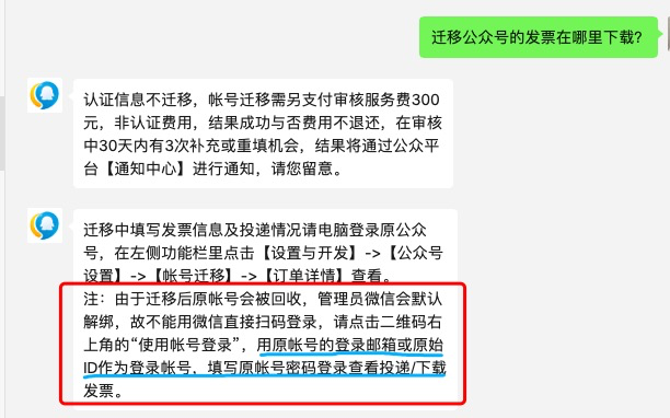 公众号迁移完成,原账号登录不上了,账号和密码也忘记了,要怎么把迁移发票下载下来呢?