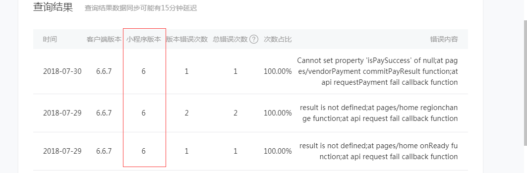 小程序错误日志中显示的小程序版本号错误,如图,实际当前版本1.6