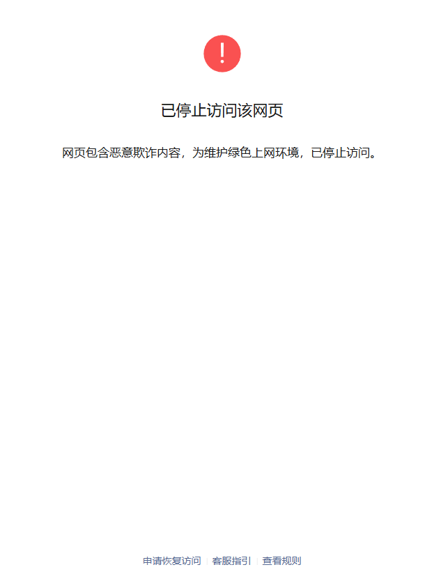 微信内访问网站出现“网页包含恶意欺诈内容,为维护绿色上网环境,已停止访问”的拦截提示,网站符合《微信外部链接内容管理规范》,腾讯安全网址安全中心检测网页没有不安全的内容,请求核实后解除在微信内的访问拦截提示,谢谢