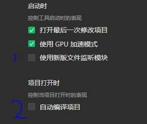 设置 -> 通用 -> 取消勾选 “项目打开时自动编译项目”