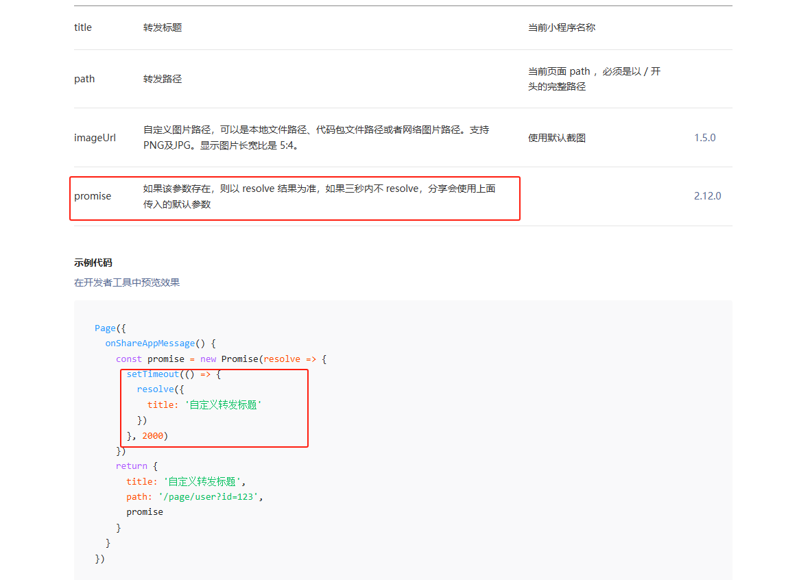 使用button中的open-type配合onShareAppMessage事件做微信转发功能,想在用户点击按钮的时候动态调一个接口获取参数,然后在path中拼接这个参数,但是未生效依旧会提供一个默认路径唤起面板
