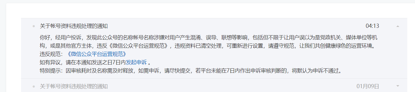 我是学院微信公众号运营管理者,近期我们的公众号名称被多次举报,但我们第一次被举报的时候已经改了名,而且并不存在举报内容所述问题,我该怎么办