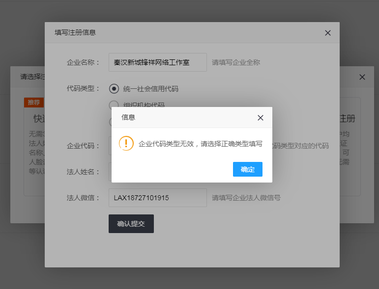 营业执照注册已经满15天依然提示企业代码类型无效,麻烦尽快更新一下