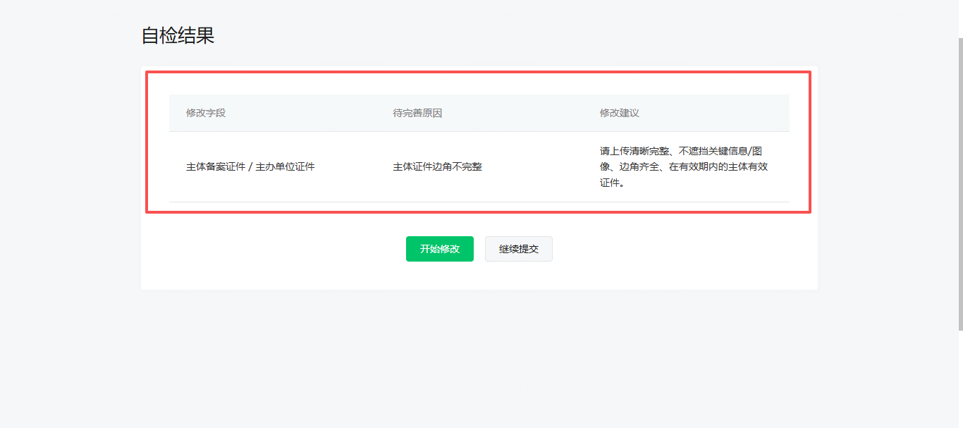 我在小程序备案时,总提示“主体证件边角不完整”,已经多次上传《备案承诺书》。还是不行,请问是什么原因?