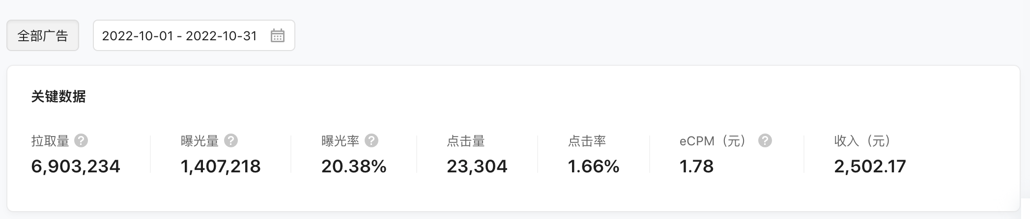 10月份总费用 3299 ,广告收益 4300,收入还是1K多。