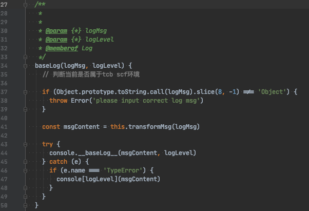 try { console.__baseLog__(msgContent, logLevel) } catch (e) { if (e.name === 'TypeError') { console[logLevel](msgContent) } }遇到同样问题。本地调试云函数,如果里面有高级日志,就会报错