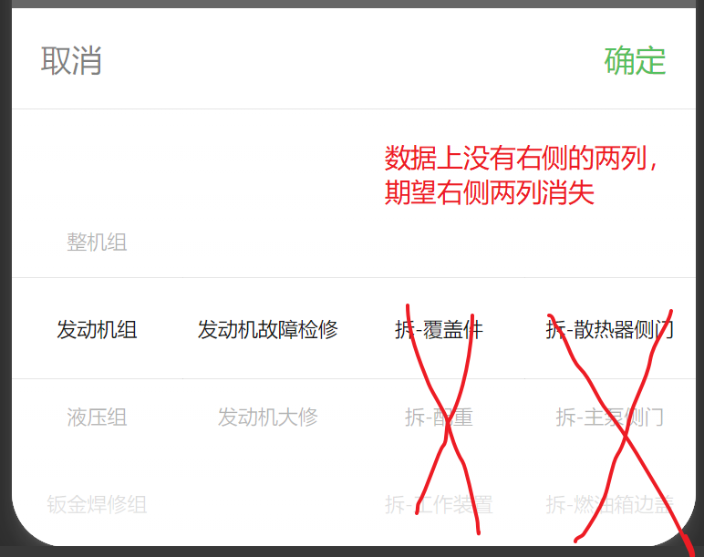 图一是对的效果,但是切换到第一列的下一个选项图二,右侧的列在数据里不存在也不会响应式更新:
