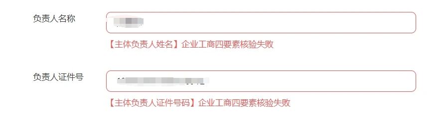 微信小程序,点击去备案,上传主体负责人信息,提示企业工商四要素核验失败。上传的是法人的身份证信息和号码,请检查一下。
