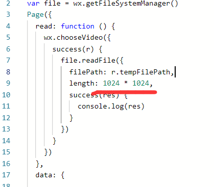 wx.chooseVideo({ success(r){ file.readFile({ filePath: r.tempFilePath, length:0.1*1024*1024, success(res){ console.log(res) } }) } }) 无论怎么设置length,都是整个读取文件