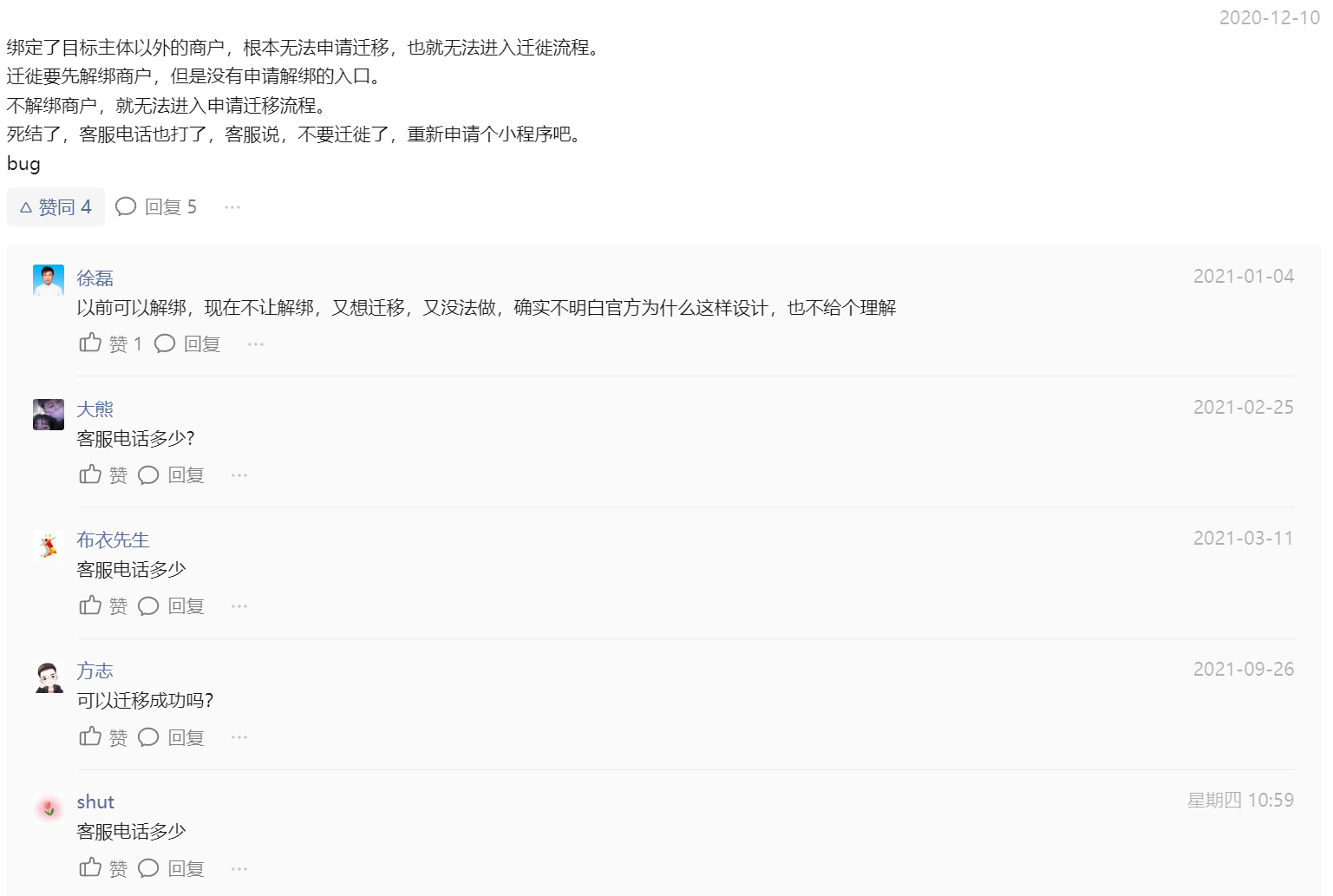 小程序绑定了其它商户号不能迁移,而解绑商户号需要先进行迁移,这是用脚想出来的处理方式吗?