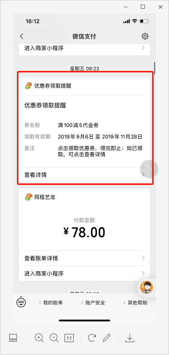 像这种优惠领取提醒没有在订阅消息或者模板消息里见到,是怎么实现的呢,普通的小程序可以发吗?