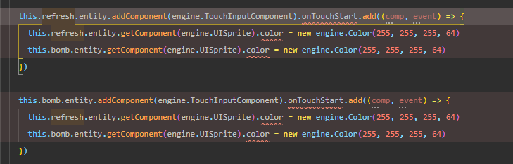 功能很简单,两个按钮是联动的,设置一个开关,开关值为真时,这两个按钮图片的透明度就是正常255,如果开关值为假,两个按钮的透明度为64,也就是25%的透明度。
