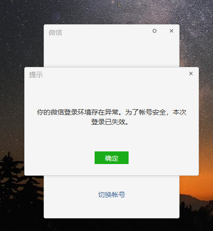 电脑版微信,今天换了新电脑,一直掉线,提示登陆环境异常,请帮我解决下。谢谢