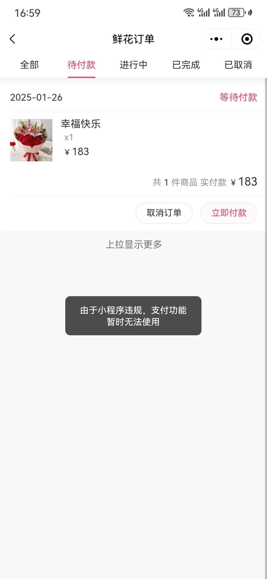 小程序提示:由于小程序违规,支付功能暂时无法使用
