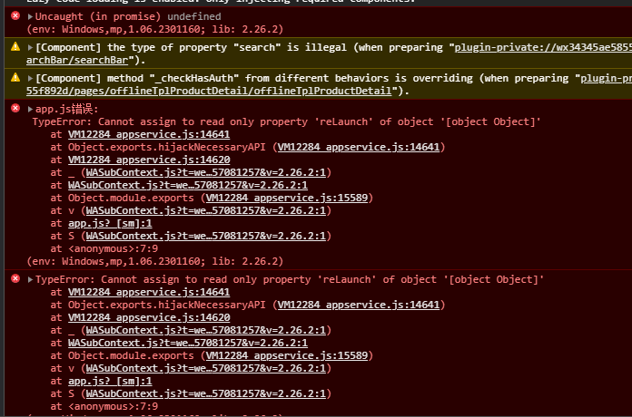 开发者工具调试基础库大于2.25.4会报这个错,代码中没有reLaunch这个方法,为什么呢?