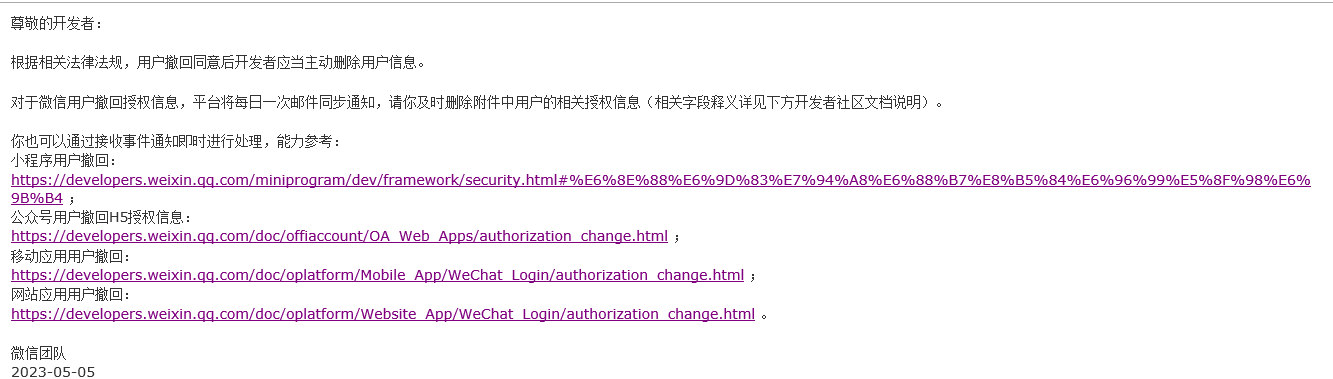 今天收到微信团队发来的邮件,说有用户撤回了授权信息,请问下一步该如何操作?如何判别该用户是小程序还是微信公众号的用户?