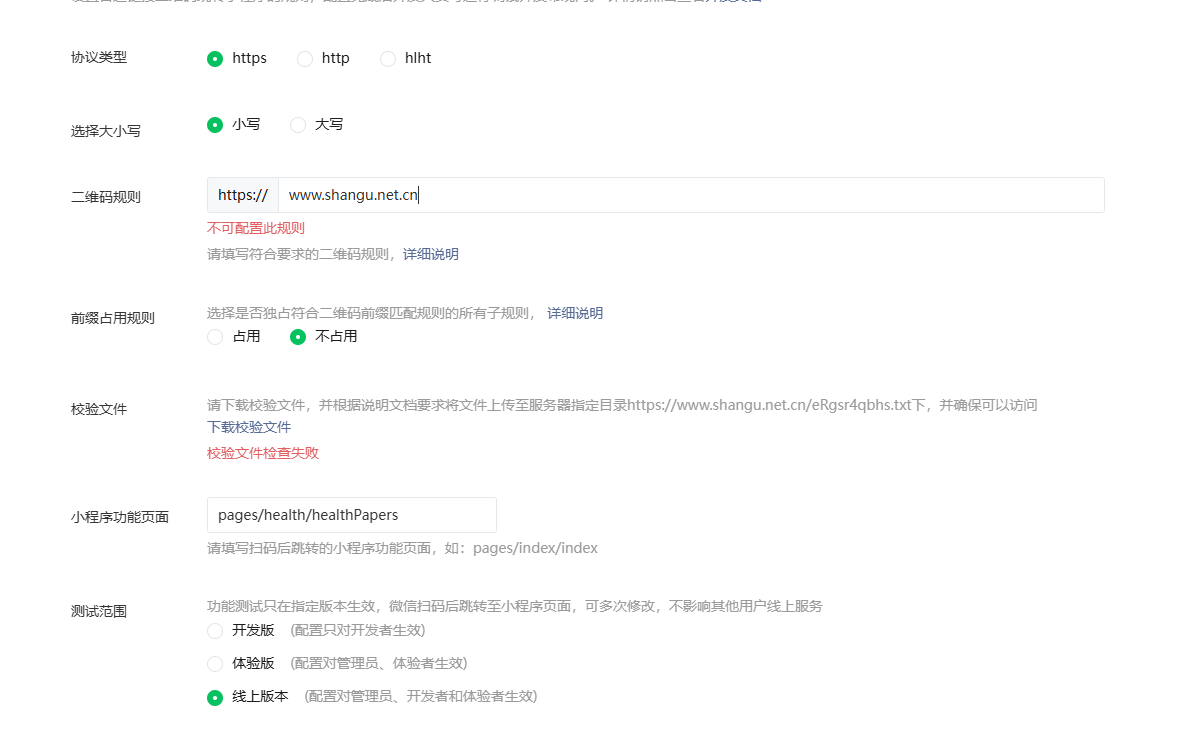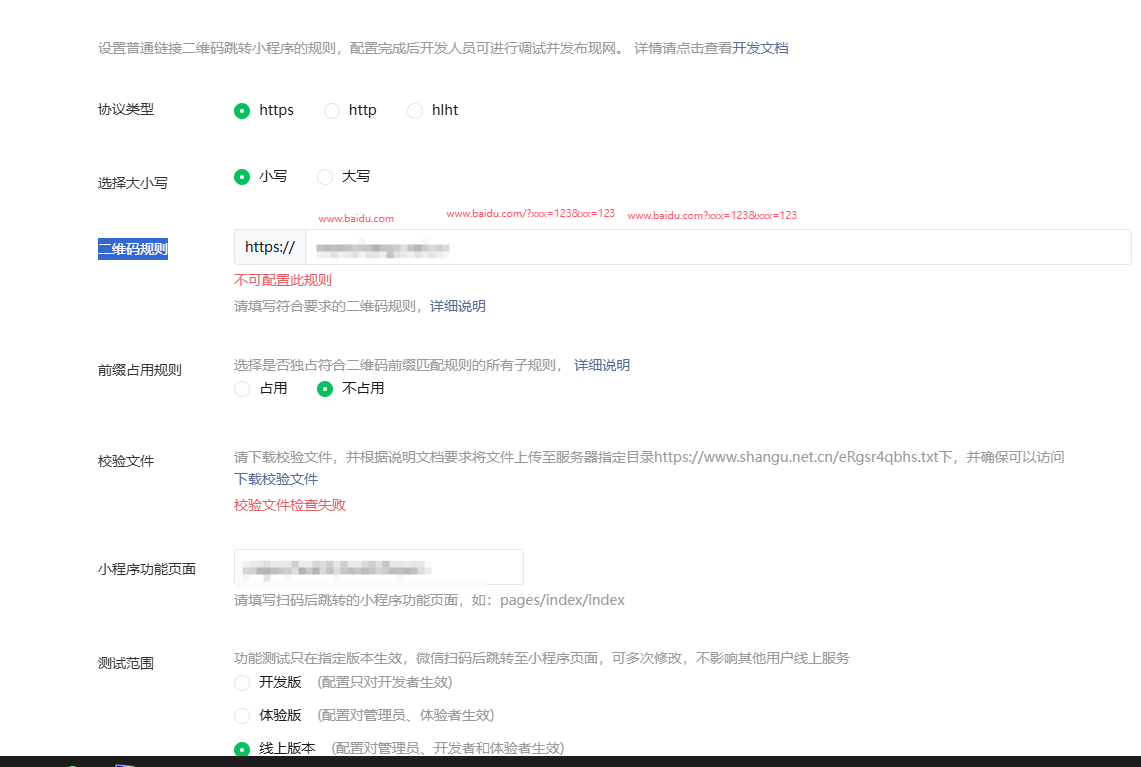 二维码配置规则使用了各种方式,一直提示不可配置此规则