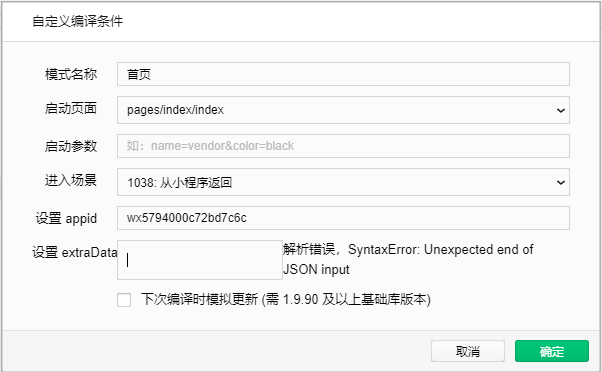 自定义编译条件,总是提示extraData解析错误。