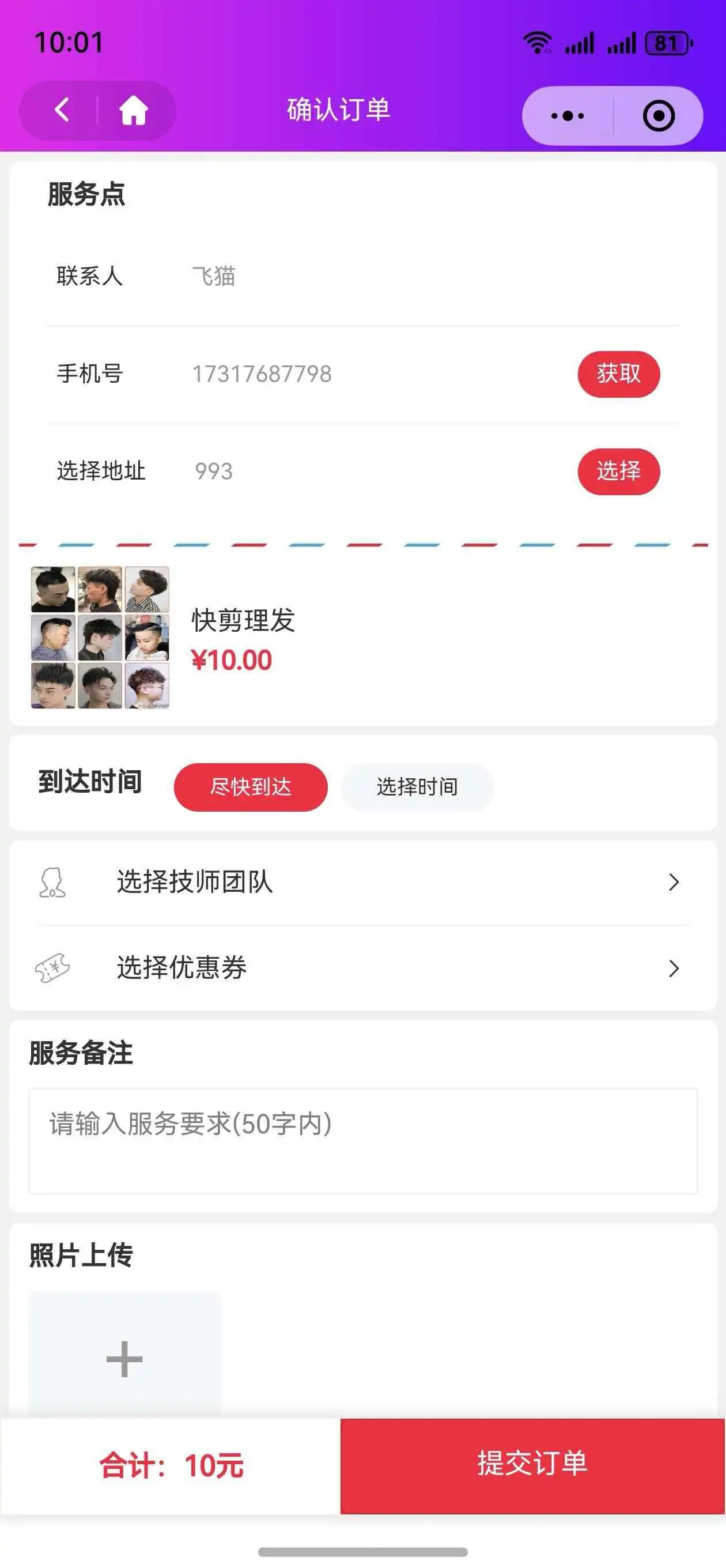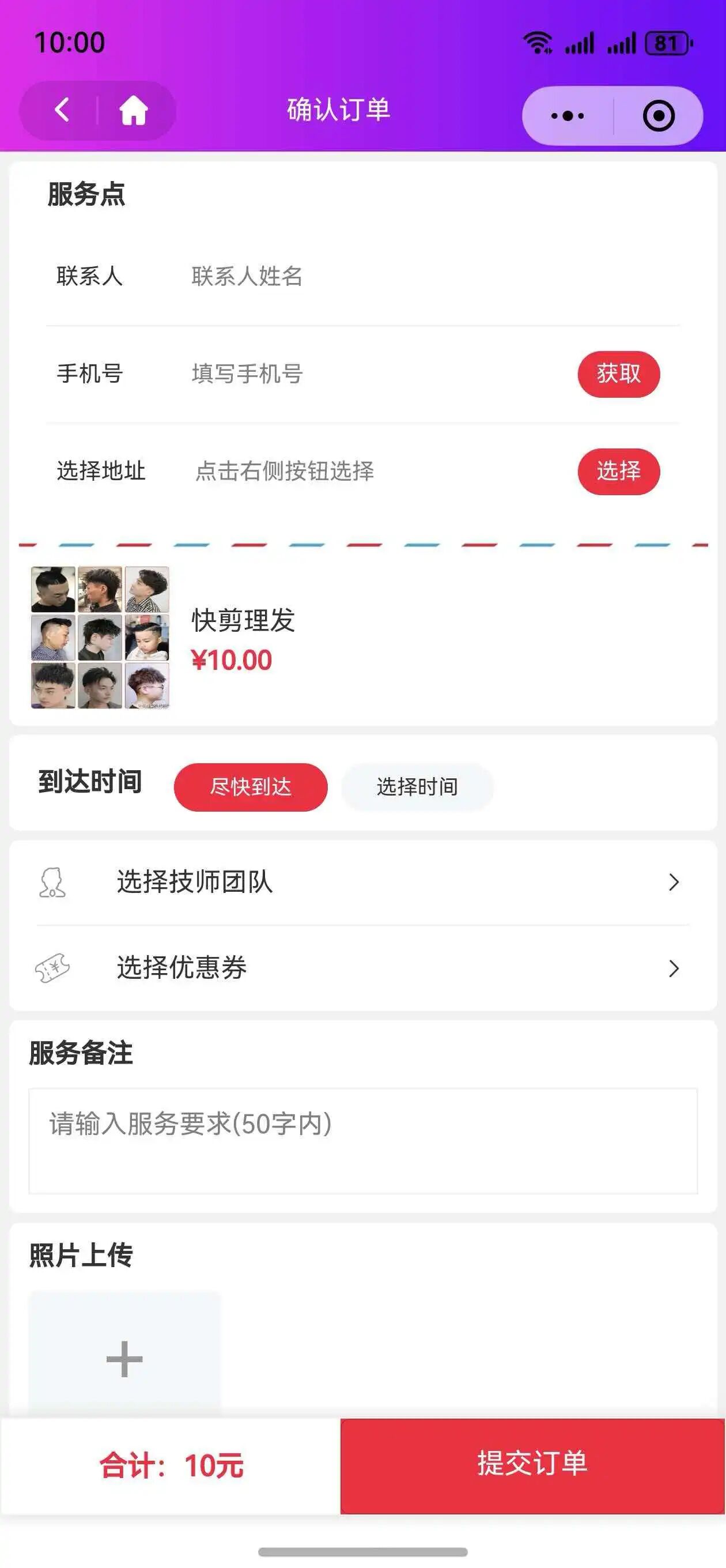 小程序提供给客户选择时间选择服务项目选择技师等功能,完成支付到预约到服务点。