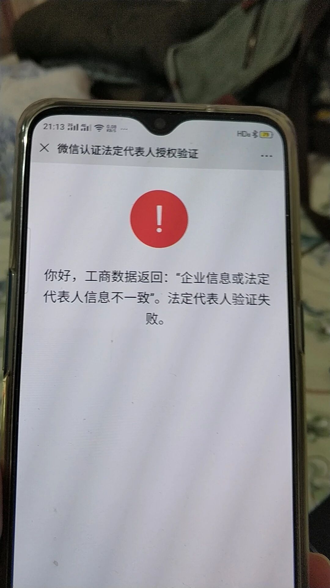 小程序认证,法人认证一直无法通过,提示 你好,工商数据返回:“企业信息或法定代表人信息不一致”。试过很多次了,填写信息也正确,法人也是本人~