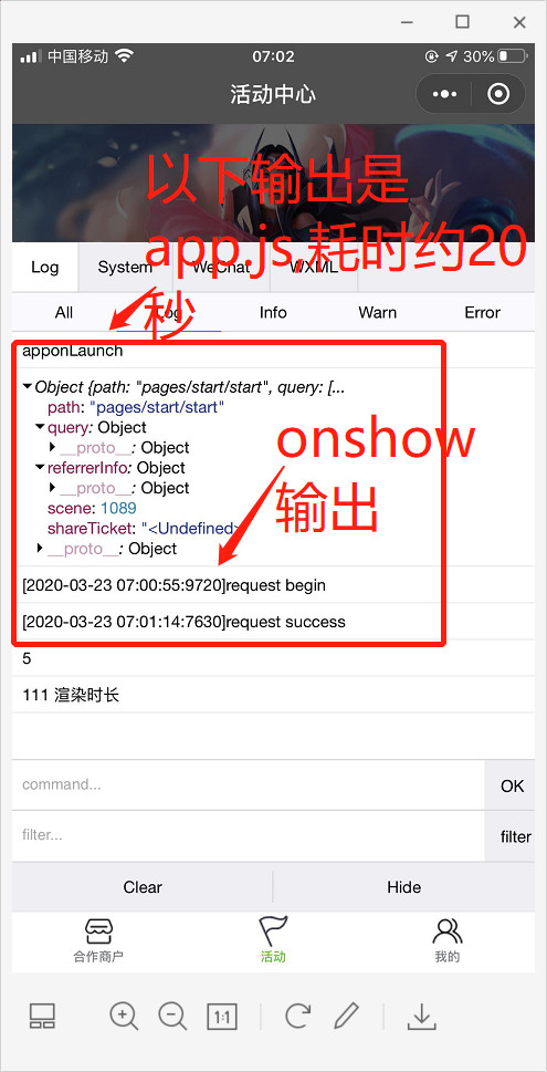 1.下图是销毁后二次进入 app.js onshow里的事件所用时间