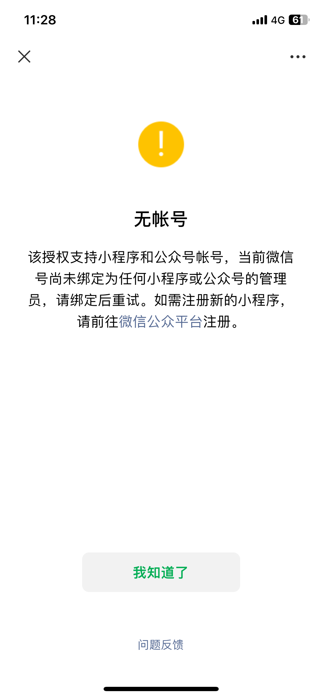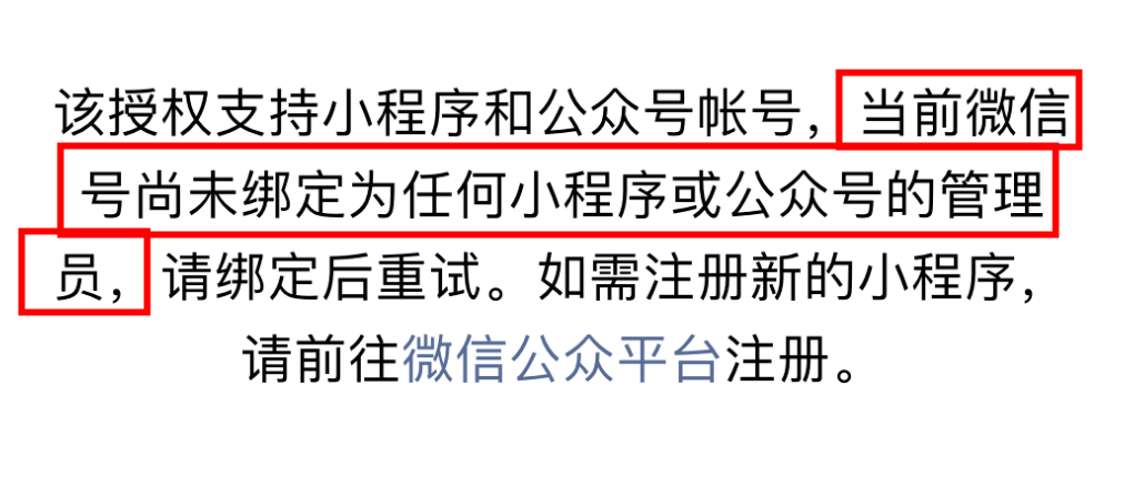 授权需要管理员角色,其他角色都不可以,如果你的微信没有绑定作为管理员角色的帐号,扫码授权的时候就会提示没有帐号。