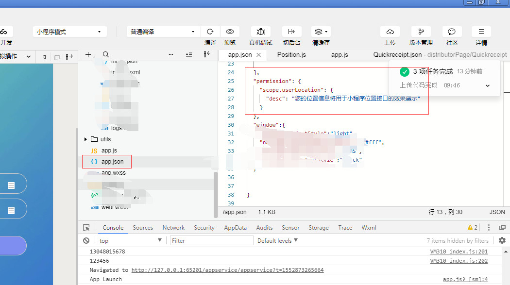 已经解决了,不小心把获取位置信息声明加到app.js里面了,应该是app.json