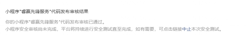 你好,经核实,你的小程序最新提审版本【代码审核侧】已审核完成,请留意站内信通知。
