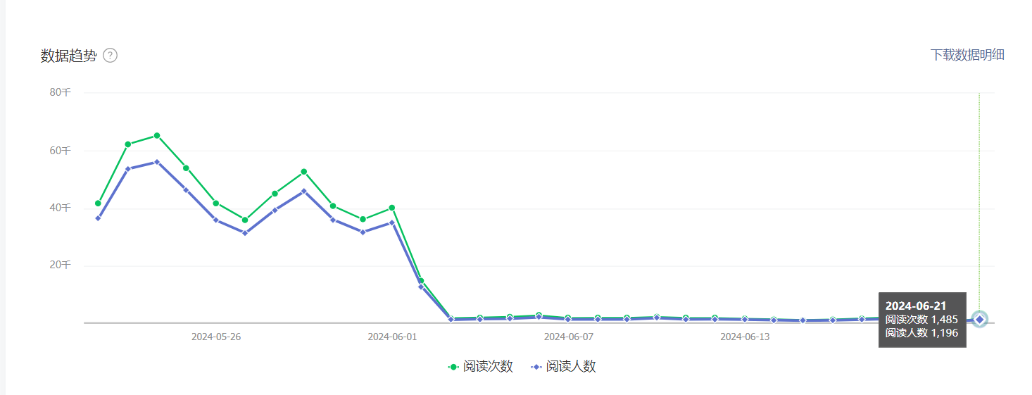 我是公众号提瓦特大拿的运营作者,该公众号从去年一日起就一直在更新,数据也是不错,直到今年6月3日起就不推荐了,起初并未当回事,过几天通过后台数据发现推荐直接成个位数,尝试各种方法也无果,在搜一搜中能搜到文章,近期并无违规事项,恳请大佬支支招。