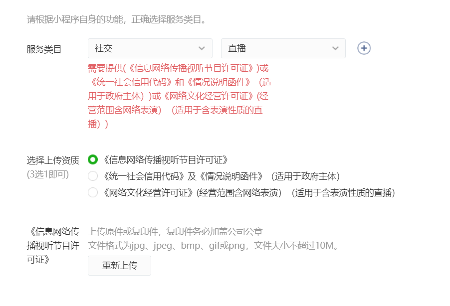 我的小程序是给装修业主提供工地视频监控服务的,不是直播平台,但是审核的时候非让我去选择直播类目,请问如何解决?