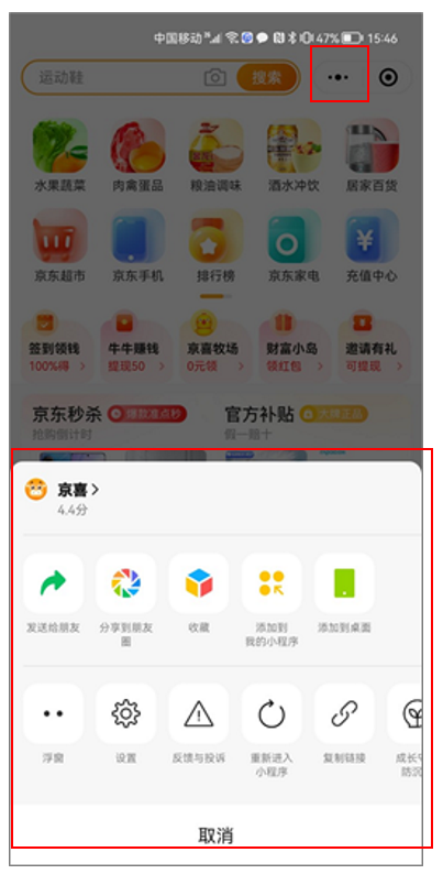 onLoad(opt) { // 设置分享时带上分享信息 wx.showShareMenu({ withShareTicket: true, menus: ['shareAppMessage', 'shareTimeline'], success(r){ console.log("success: ", r) }, fail(e){ console.log("fail", e) } }) }默认就有,无法修改,不需要自行加入