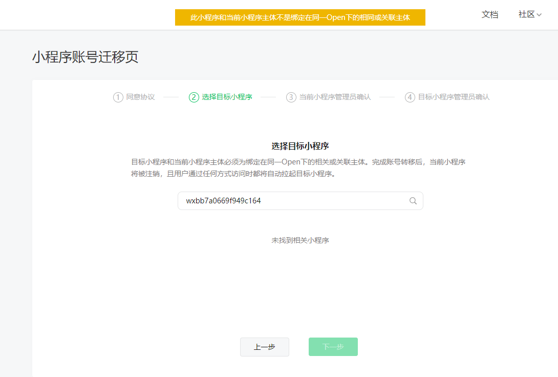 应该是符合同一主体下的关联主体的,具体截图在 https://developers.weixin.qq.com/community/develop/doc/0008ae50c78b707287c010e926b000?fromCreate=0