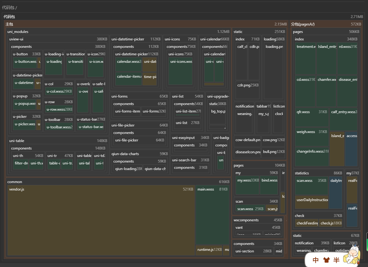 总而言之言而总之就是继续分。主包留tabbar页面。静态资源 压缩、分包,还大的话扔服务器用url形式。三方组件的东西没多大的,我一个项目同时用uni-ui和uView都没问题