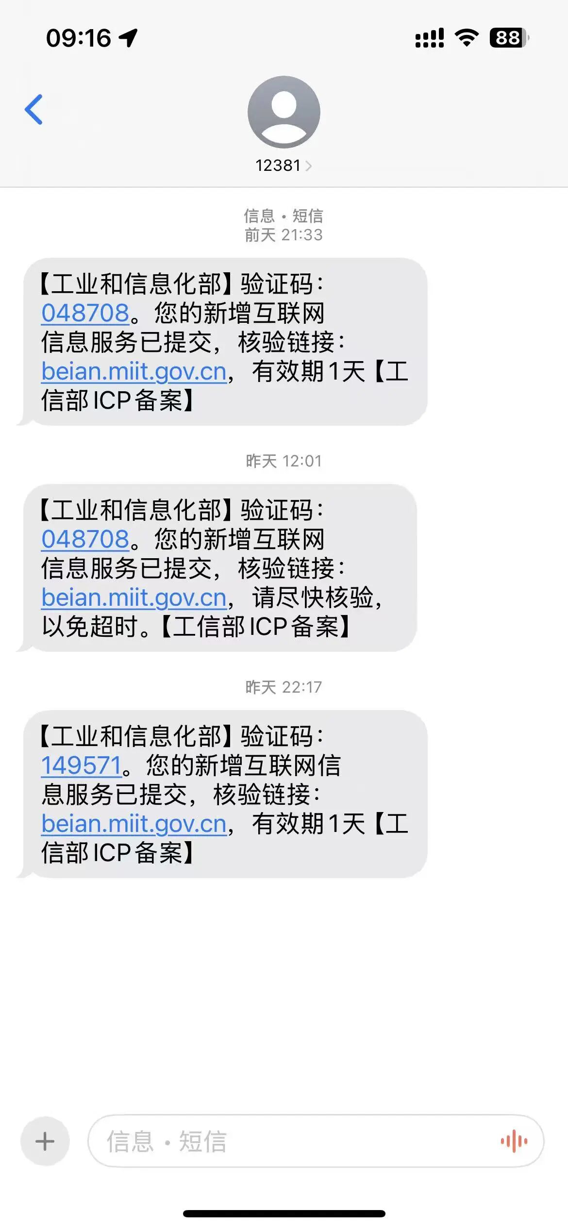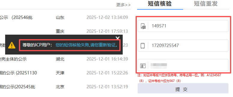 你好,请核实当前是否有在规定时间内核验,需在收到12381开头的核验短信24小时内容完成核验,并需根据备案小程序的实际备案类型、涉及的变更信息或发起对象来判断短信核验对象。请排查当前填写的号码和身份证后六位是否与备案订单中填写的主体负责人信息一致,更多工信部短信指引详情:https://developers.weixin.qq.com/miniprogram/product/record/sms_verification.html